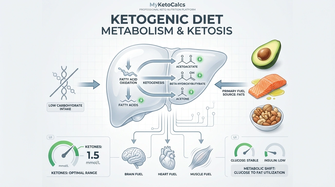 The ketogenic diet is an eating pattern designed to induce a metabolic state known as ketosis. It drastically reduces carbohydrate intake — typically to less than 50 grams per day, often as low as 20 grams — causing the body to shift from burning glucose to burning fat for energy, producing ketone bodies (acetoacetate, beta-hydroxybutyrate, and acetone) in the liver.